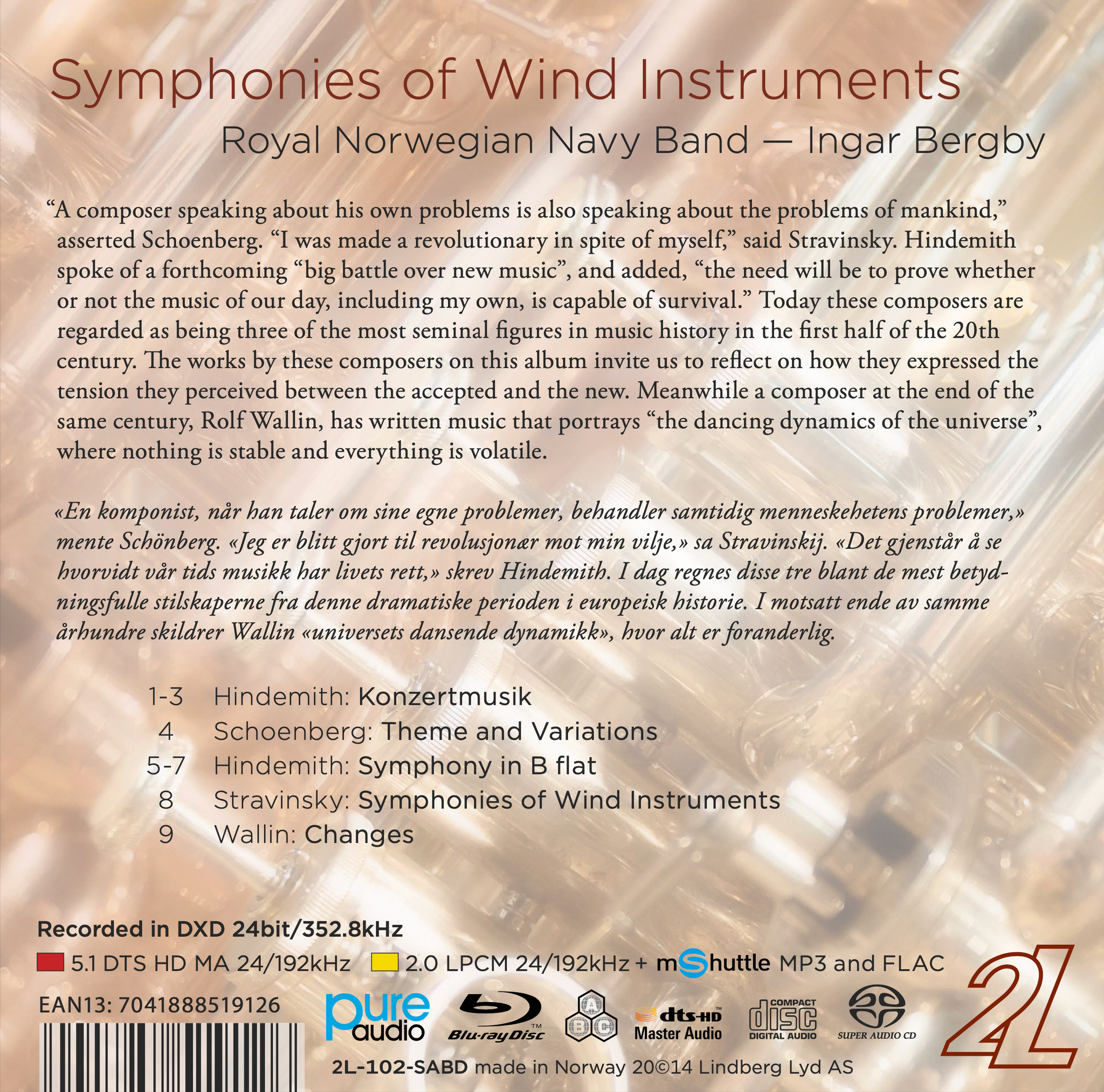„Ein Komponist, der über seine eigenen Probleme spricht, spricht auch über die Probleme der Menschheit“, behauptete Schönberg. „Ich wurde wider Willen zum Revolutionär“, sagte Strawinsky. Hindemith sprach von einem bevorstehenden „großen Kampf um neue Musik“ und fügte hinzu: „Es wird sich zeigen müssen, ob die Musik unserer Zeit, einschließlich meiner eigenen, überlebensfähig ist.“ Heute gelten diese Komponisten als drei der prägendsten Figuren der Musikgeschichte der ersten Hälfte des 20. Jahrhunderts. Gegen Ende desselben Jahrhunderts schrieb Rolf Wallin Musik, die „die tanzende Dynamik des Universums“ darstellt, in der nichts stabil und alles unbeständig ist. Die Werke dieser vier Komponisten auf diesem Album spiegeln die universelle und zeitlose Balance zwischen Tradition und Innovation wider. Die Royal Norwegian Navy Band unter Ingar Bergby beleuchtet diese Balance in ihren Aufnahmen und haucht dieser Musik neues Leben ein.