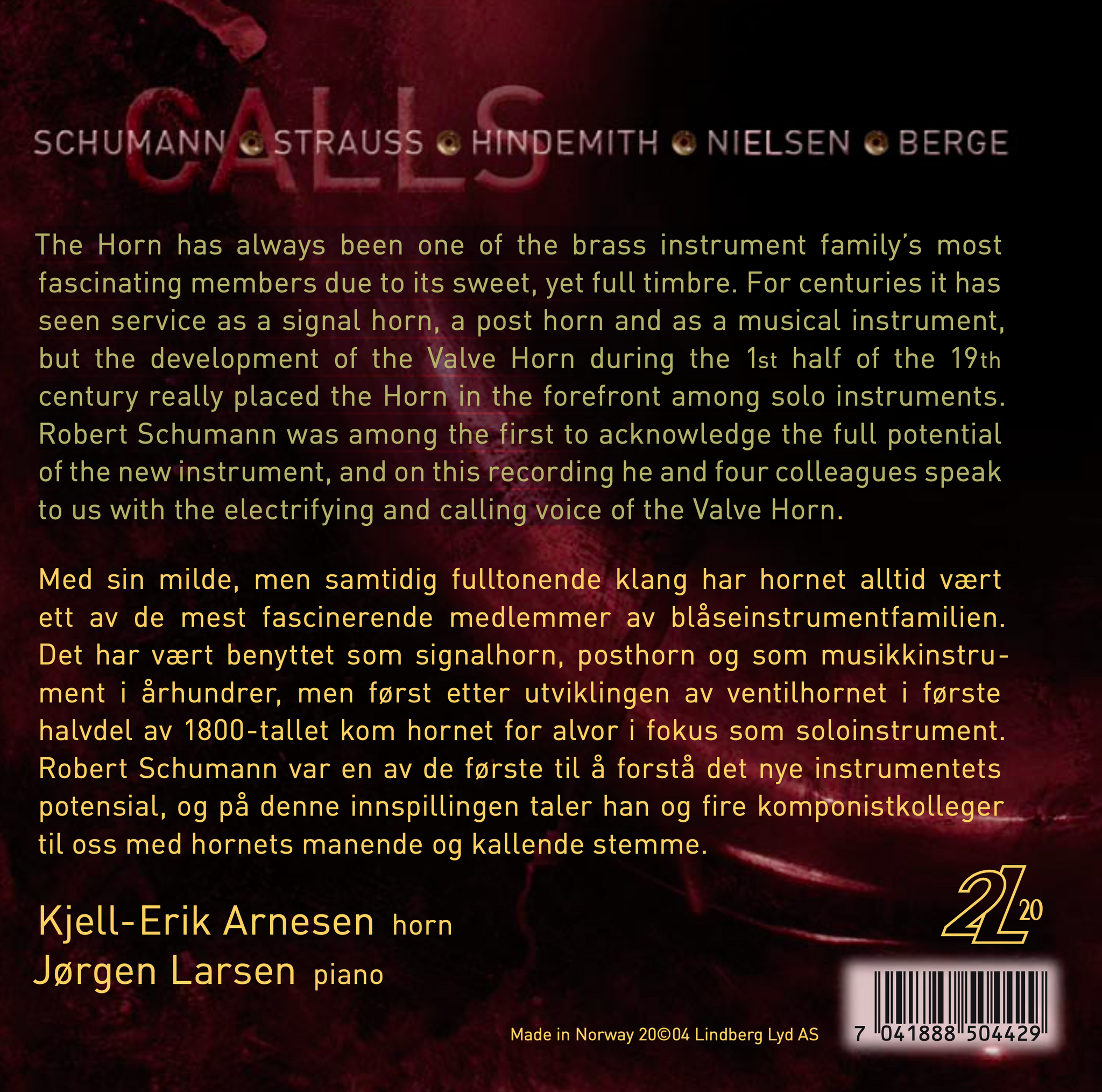 The Horn has always been one of the brass instrument family’s most fascinating members due to its sweet, yet full timbre. For centuries it has seen service as a signal horn, a post horn and as a musical instrument, but the development of the Valve Horn during the 1st half of the 19th century really placed the Horn in the forefront among solo instruments. Robert Schumann was among the first to acknowledge the full potential of the new instrument, and on this recording he and four colleagues speak to us with the electrifying and calling voice of the Valve Horn.