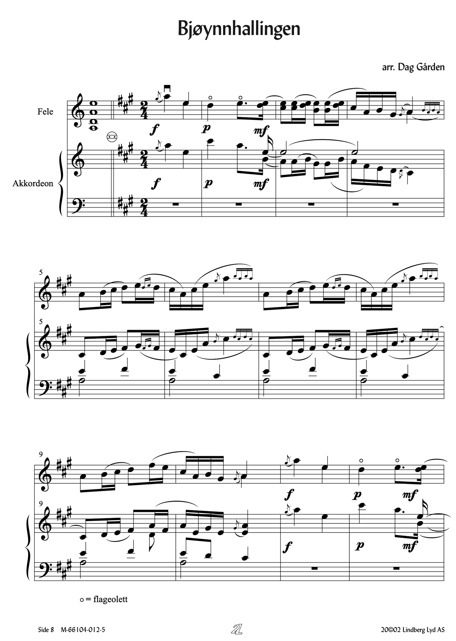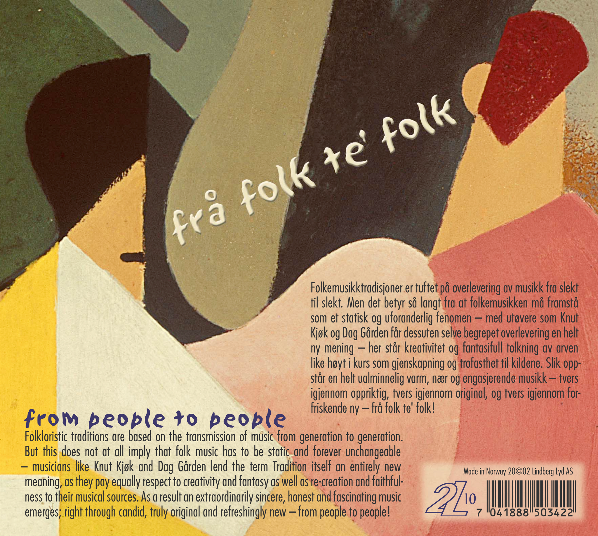 Folkloristic traditions are based on the transmission of music from generation to generation. But this does not at all imply that folk music has to be static and forever unchangeable – musicians like Knut Kjøk and Dag Gården lend the term Tradition itself an entirely new meaning, as they pay equally respect to creativity and fantasy as well as re-creation and faithfulness to their musical sources. As a result an extraordinarily sincere, honest and fascinating music emerges; right through candid, truly original and refreshingly new – from people to people!