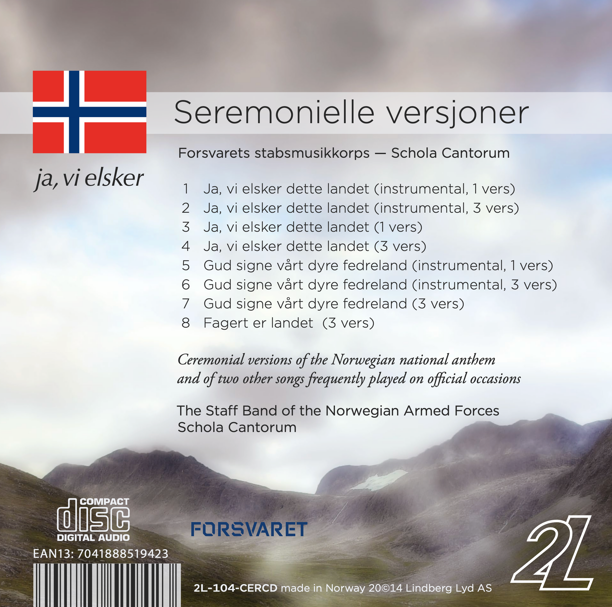 Musikk og arrangementer av Stian Aareskjold, Johan Halvorsen, Frank Winterbottom, Ludvig Mathias Lindeman, Stig Nordhagen, Henrik Wergeland, Svein Henrik Giske, Johan Svendsen, Dan Godfrey, Christoph Ernst Friedrich Weyse, Øivind Westby, Edvard Grieg, Christian Blom, Reid Gilje, Oscar Borg, Bjørn Mellemberg, Lars-Erik Larsson, Melchior Vulpius, Petter Winroth, Johannes Hanssen og Rikard Nordraak.
